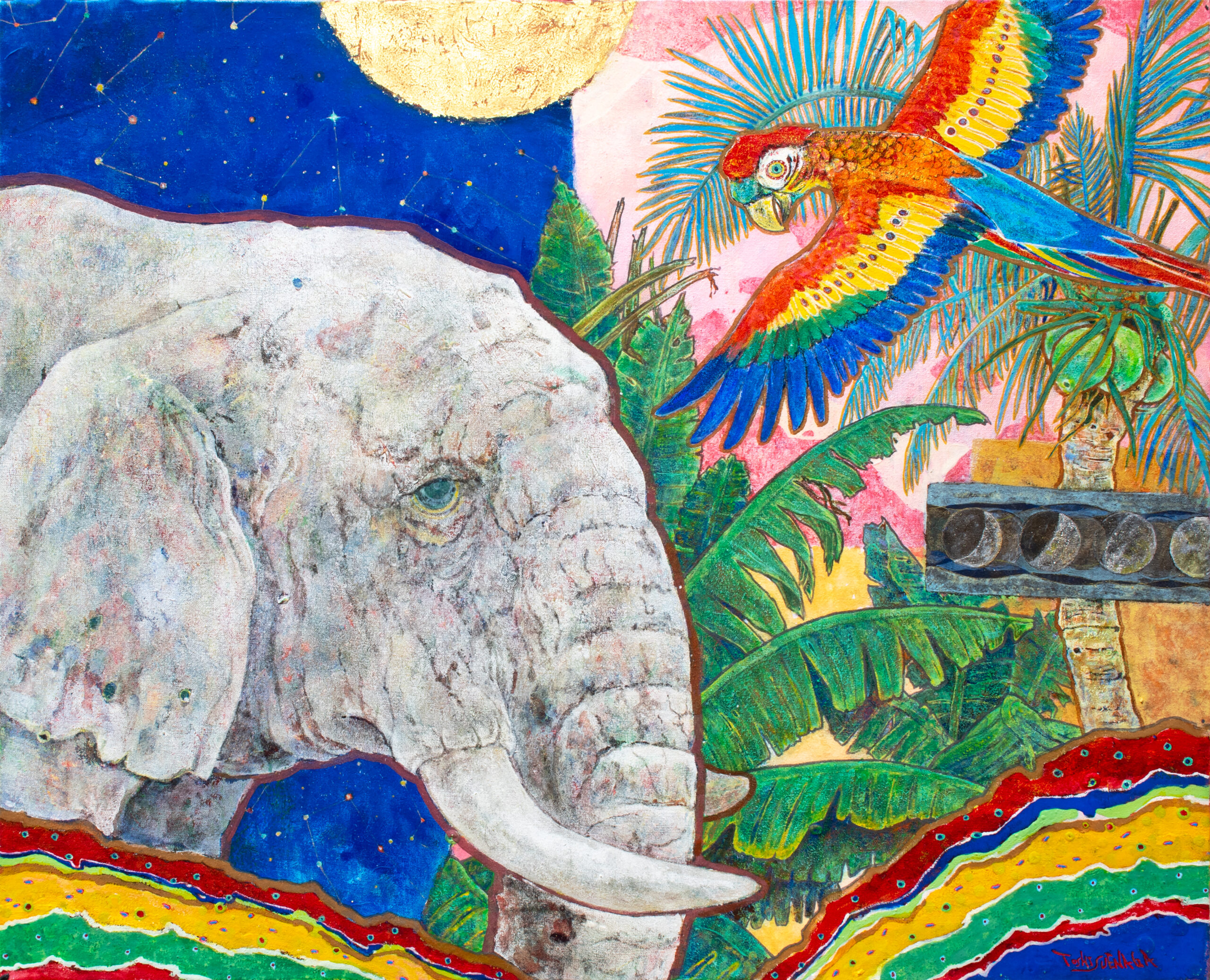 末永氏は、大地と水を主題に、生命の起源や多様性へと迫る表現を探求し続けてきました。素材研究から生まれる色彩は、アジア的な深みを湛えつつ、日本人の感性に寄り添う独自の響きを放っています。鉱物、植物、そして生き物たちの姿を通して描かれるのは、「個体の生を超えて続く時間」と「結びつきの永遠性」。地球上に広がる多様な“生命の営み”が互いに繋がり合っていることを、見事に表現しています。末永氏の作品は、科学と芸術、地域と世界を静かに架橋しながら、私たちに“地球に生きる歓び”をそっと語りかけてくれます。ぜひ、この機会にご高覧いただければ幸いです。